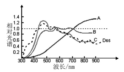 ??? 到目前為止,還沒有人造光源被推薦為CIE D65 照明體和其他D照明體?,F在正在研制的模擬D65的人造光源有:帶濾光片的高壓氙弧燈、帶濾光器的白熾燈、帶濾光器的熒光燈三種。其中,帶濾光片的高壓氙弧燈的模擬最好。